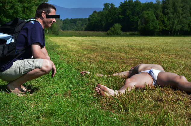 Here I just liked the idea of a gay guy on a walk finding that executed victim. There's no point in wondering if the dead guy was straight or not. There's no need in wondering if he'd like being expected by a total stranger. And in this case the gay guy is into feet for instance. It goes without saying that the dead guy can't mind and it's all up to he guy stumbling over him to get carried away by his own secret fetish or tendencies...
