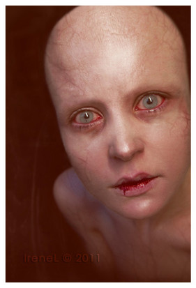 She is sculpted in polymer clay. the brands I used for her is Premo with a mix of living doll.