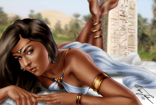 An egyptian princess. 'Nefer' (or more precisely nfr, as egyptian hieroglyphs didn't show vowels), as found in Nefertiti and Nefertari, being the Ancient Egyptian word for 'beautiful'.Two versions are shown here: right the original version from 2008 and left a new version just finished. Besides the obvious flipping of the canvas (I figured it to be more expressive that way), changes include the substitution of lines with shades, addition of some details and some general color and shade balance thingies. I still think there's room for improvement, but I'm gonna leave it as it is for now.