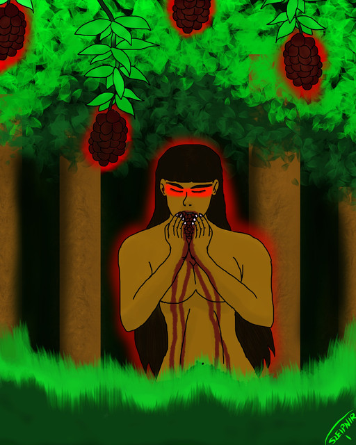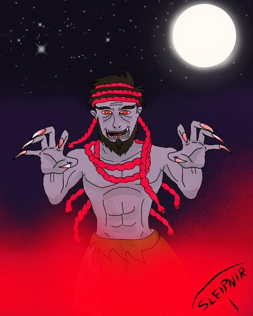 Illustration made for use on my blog, Portal dos Mitos. The Man-Beast is a man-eating creature of Brazilian folklore, with variations of its legend throughout Brazil. He is generally described as being a kind of giant, having only one eye located in the middle of the forehead and one leg, with a huge round foot. The fingers of his hands are long and misshapen, with long, sharp nails. It is said to have a desperate and anguished cry, so loud and loud that it can be heard many leagues away.