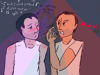 I don't know if you're good at animals, but could you draw her tugging on a Chihuahua's left paw and innocently telling him, "Lรณ quiรฉrรณ Taco Bell!"