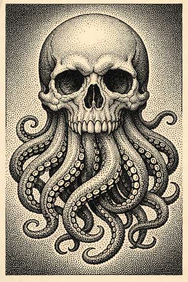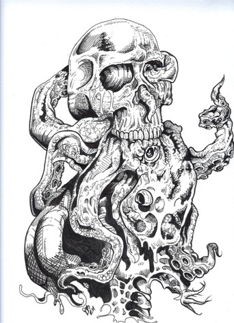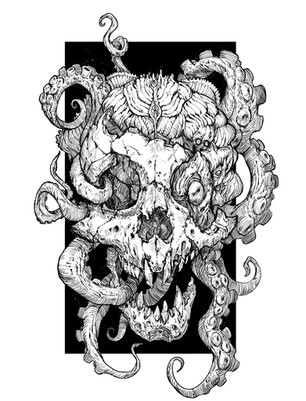 #fantasyart #monster #creature #tattoo #skull #octopus #digitalart #horror #ink #lineart #macabre #characterdesign #scifi #animal