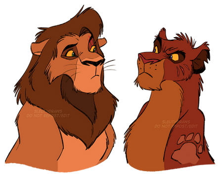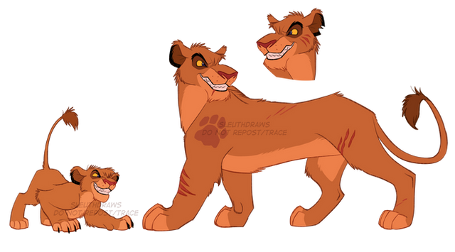 What I wanted to do was poke fun at him, make him a satire of other versions of himself among other things. My Kopa fetishizes royalty because he was given a tiny taste of it and glorifies it to murderous ends. He's much like Simba as a cub but turned up to 100. He doesn't view lionesses as smart or capable, sees them as vessels and prizes. Meanwhile, everyone coddled him, praised, only fueled his arrogance. He appears to be a nice guy, but in reality, he's not only a disgusting, narcissistic person, but worse -- he's the type that convinces you that he isn't. He's got looks and "charm" but at the end of the day, he's using you to bolster his ego. He's got cronies that do his dirty work and avoids all responsibility. Every bad thing that happens to him is his own fault, yet is entirely unwilling to acknowledge it.