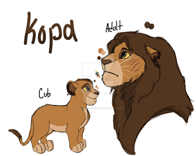 He was one of the first cubs to be born after the end of Scar's reign and as such, didn't grow up with all that much. Regardless, much to Mheetu's glee, Kopa came out a hefty cub, with no sign whatsoever of the illness that afflicted him at birth.