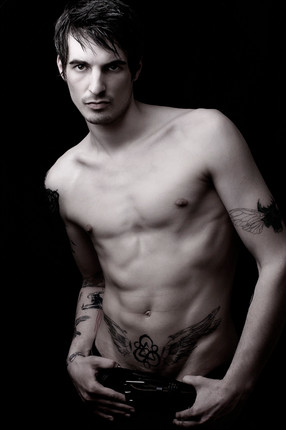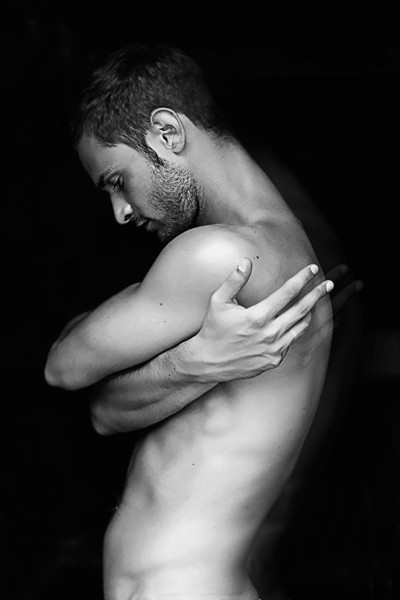 Love the pose, love the look, love the model, love the muscles... angle, b&w, everything.