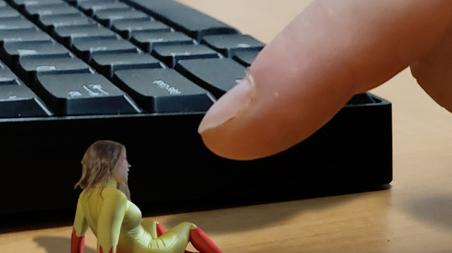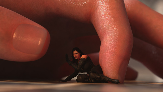 #shrunkenwoman #catsuit #digitalart #dirty #giant #keyboard #laracroft #laracrofttombraider #peril #minigirl #laracroftfanart #tinywoman #giantfinger