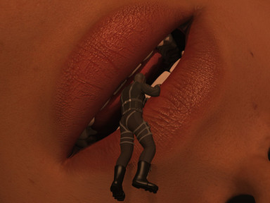 Between the giant tongue probing her, the teeth pinning her in place and the lips smacking against her, Lara desperately struggles to gain some ground but in vain.The giantess licks and feels her whole body, moaning in pleasure. The vibrations from the throat move her ever so slightly downwards into the darkness.
