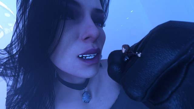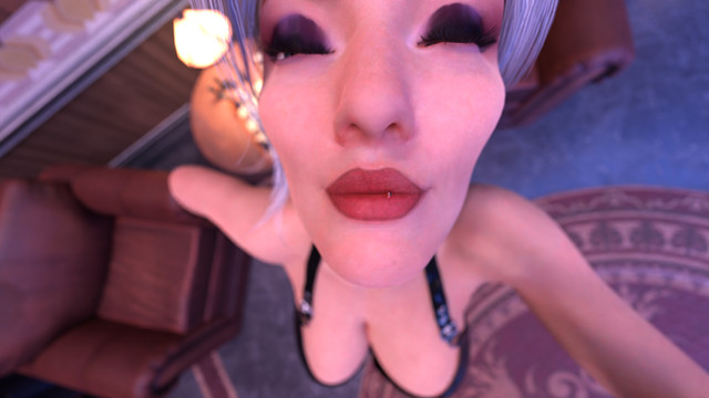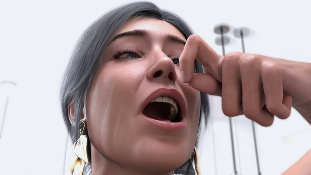 Lara struggles, but in vain. She is trapped between the giant lips and teeth, with the tongue greedily sweeping over her whole body.