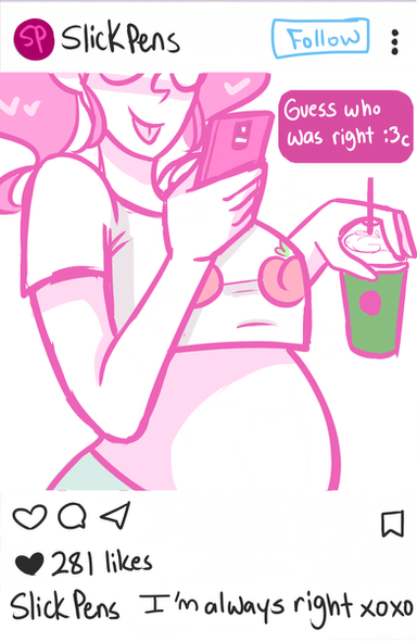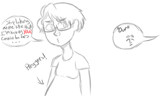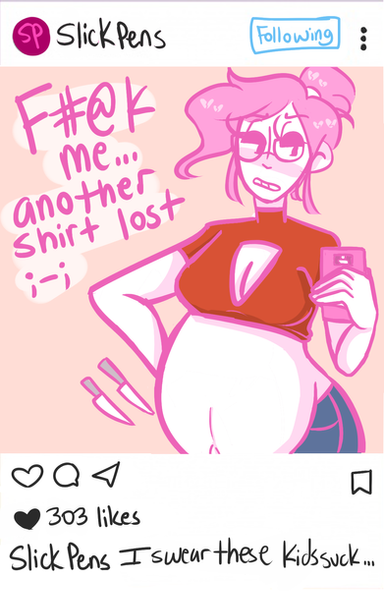 In between request doodle of myself. I draw with my leg up on my chair and with a belly that probs wouldnt happen thought it'd be fun to post this.Also I get a ton of messages like "YOU DRAW YOURSELF PREG???" I mean like yeah I like pregnancy so as a girl why wouldn't I draw that fam??? You can usually tell it's me with the like side hairs, single same facing eyelash, and huge nerdy glasses