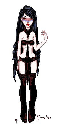 Hehe scrumptious. x3 Thats what I thought about the clothes, first thought. Second thought was "Ohmygod thats awesome! " Hehe. xD Sorry. Had to say that. She looks really awesome. :3