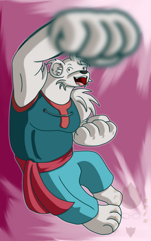 Somewhat experimental, but I wanted to give her a good pose! She can't fly, but she's got a ton of muscle and can jump fairly high! Excels at all sorts of Olymipc sports, especially those that require arms.