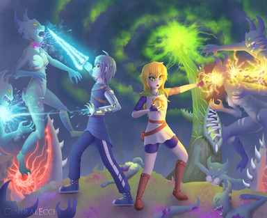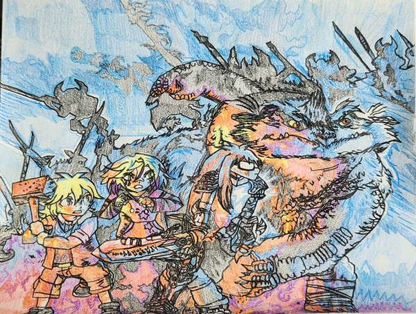The Zero digimon strike again! With Echomon (who summoned them through her portals) in the background. That big blob is more zero digimon, but it wasn't fun drawing them anymore