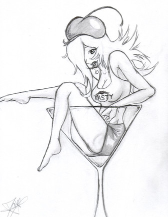 Sketch of Jessica Rabbit from "Who Framed Roger Rabbit?"She's asking Eddie Valiant for help finding her hubby Roger.