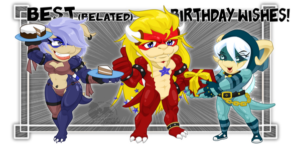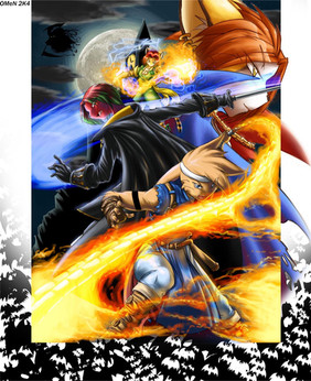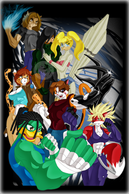 HOLY CRAP, THAT'S AWESOME! You worked so hard on the picture and it really turned out great! You can tell you put a lot of heart into it and...wow. The shading came out beautifully, the charater layout is excellent (I really like the flame effect with the...dragon character, it stands out quite well) and the big gray character in maroon and white with a hat is sexy looking. Me likey! (The girl with the hoody looks cool too.) Excellent job on the pic, it's totally badass!