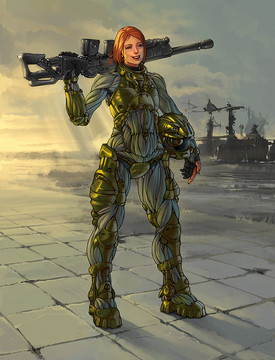 Great design & badass coloring. Specially the way she can still look femenine with the manlyness the nanosuit has