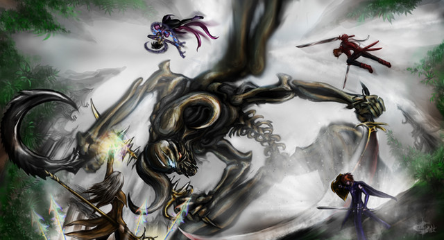 this just shows how badass noxian leader swain should be. Its a shame he doesnt seem as appealing in his current official splashart. Maybe he would be more popular then. Love the birdie on the back of him, u can even see the spit of the birds tongue. I do wonder how many hours you've spent on digital drawing to get this good
