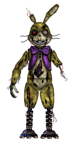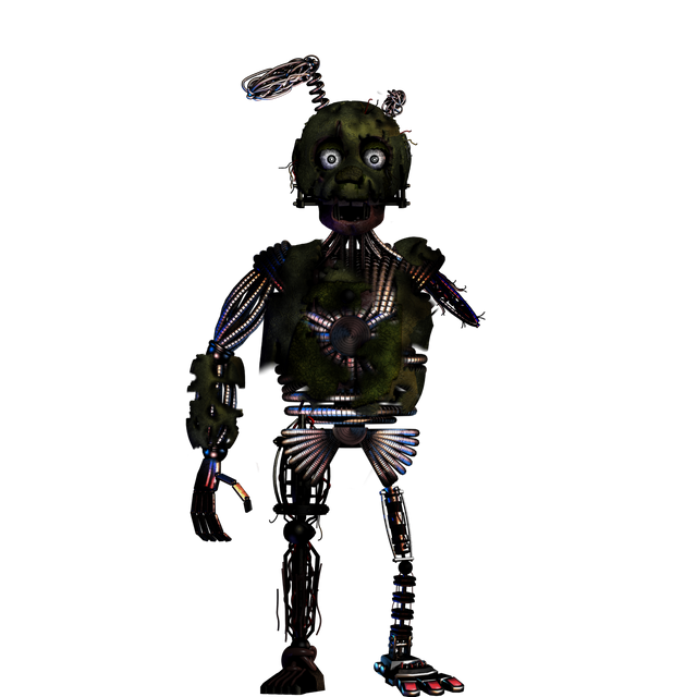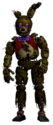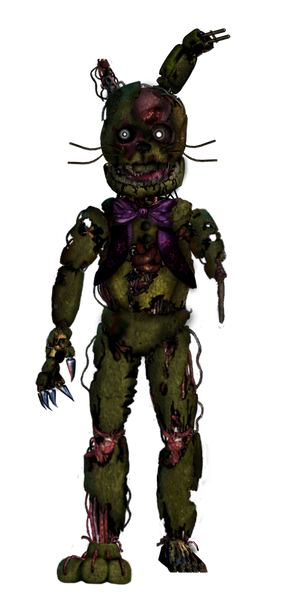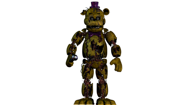 "springtrap" (2024-2026)this was the first animatronic to be discorved after the closeing of freddy fazbears in 1991 this animatronic was discorved in the "safe room" of the pizzeria there were also the destoryed remains of the original cast of animatronics but we could not find the fredbear animatronic suggesting it got moved somewhere else we are not aware of right now this animatronic vanished after the fire of fazbears fright