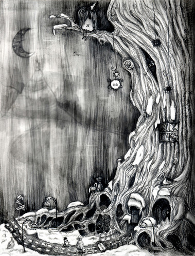 #astral #bells #black #dark #depression #doom #gloomy #grim #illustration #loss #melancholy #mountain #mystery #pencil #sad #sadness #shaman #shamanic #shamanism #slavonic #storm #symbolism #tree #wind #yearning #old #soulsurrealism #chimera #myphology #tales #trees
