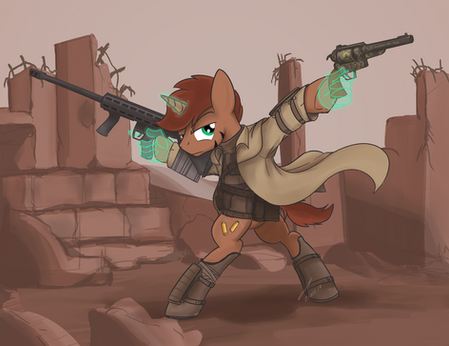 #cybernetics #firearm #gun #mlp #oc #pony #unicorn #falloutequestria