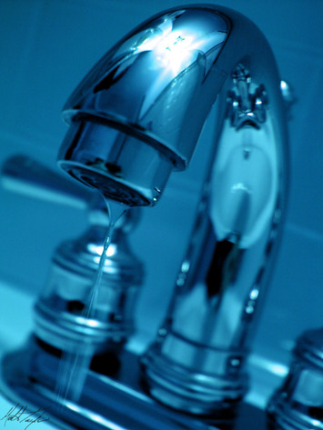 Water is always interesting, but I think it's the faucet colors and shape that really makes this shot. It's cool to see the holes that the water comes from. And the rust/mold really shows the age of this...it makes it seem more real. (Unlike the sterile blue and metal shots I'm accustomed to seeing.) Interesting blue grunge work on the sides...I suppose it reinforces the already old feel. Nice work.