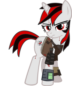 Littlepip in Chapter Three, against the raiders? Yes, indeed! (Dressing in armor scavanged from your enemies? Always a good idea. )