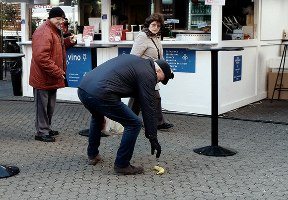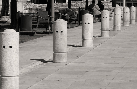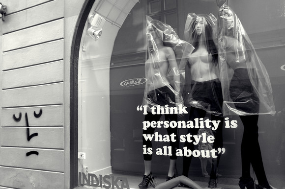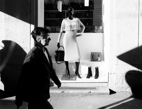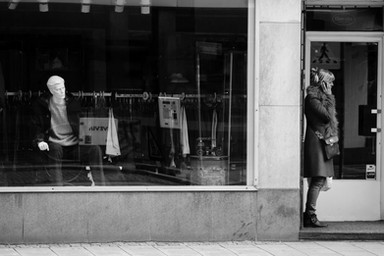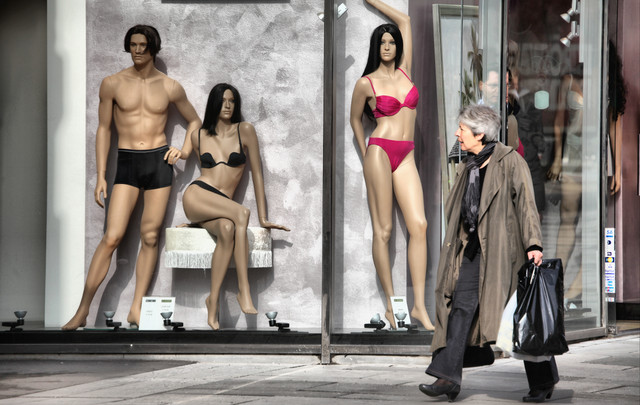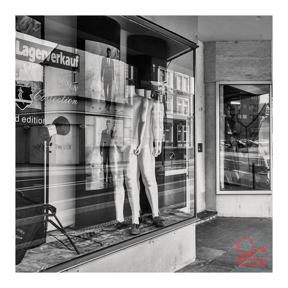 I liked the contrast between the faceless dummies and the woman walking in front of them.
