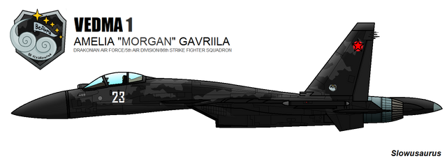 Currently the squadron has defected to the PMC organization SPECTREs after participating in numerous conflicts such as the First and Second Chechen Wars, the Georgian War and the South China Sea Incident. All members are currently wanted for treason against Russia and theft of an An-124 Ruslan cargo plane. All members of Vedma Squadron is using a heavily modded Su-27M which are dubbed as the Su-35SM2 by the PMC group.