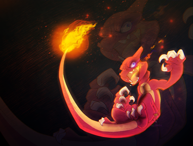 Oh now that's a beautiful one! You did a great job of capturing the whole 'apex predator' feel of the Charizard, it's power and how it might utilise its anatomical features like its forearms and tail flame.