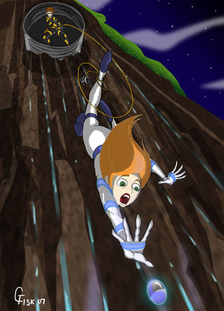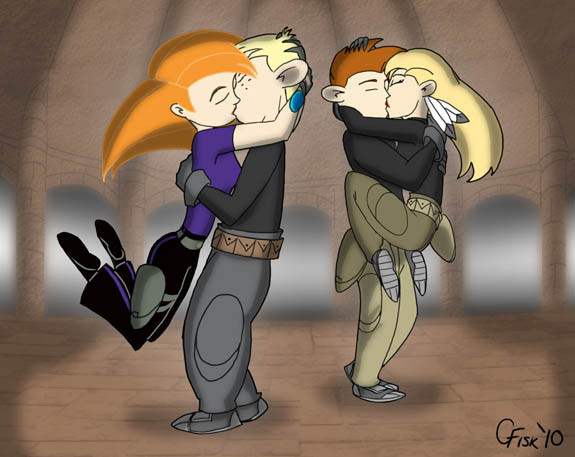 Part of "The Return of Zorpox" illustrated fanfiction. Kim and Ron embrace after Kim has used the Attitudinator to restore Ron's good. Both are worse for the wear, victims of what was essentially little more than a head game engineered by Grimm Probable to get back at Kim by hitting her where it hurt the most - her heart....Curious? Read the story here: [link]