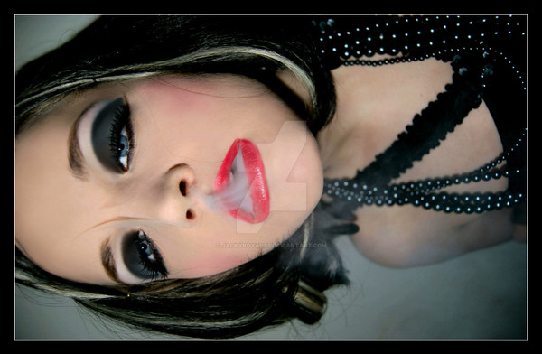 Must have been a pretty deep drag with all that smoke she's exhaling (or she must be pretty HOT!).