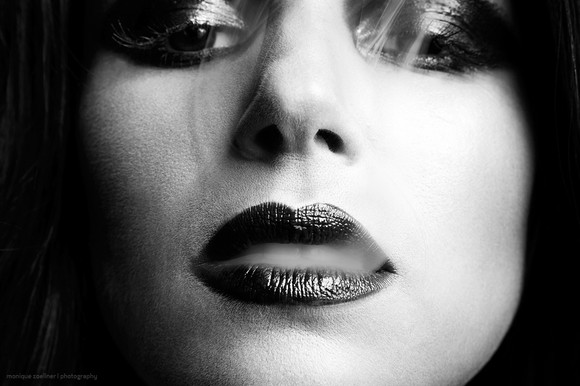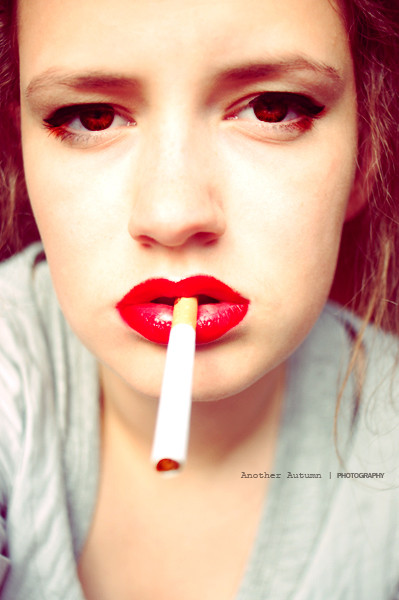 The eye contact through the smoke, and red lips, of coarse!