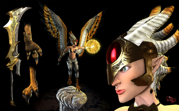 Nice piece, I like the design of the character and the asymmetrical balance of armour and cloth. Those shoulder pieces are really cool also Question - have you broken her right arm up to show us the individual pieces of armour more clearly, or is it that she has no right arm and all the sections are floating? The blade design is very cool, either way, particularly the delicate red patterning. Perhaps the armoured boot could be on the other leg, the purpose of visual balance, but that's a small point, in an otherwise strong piece.