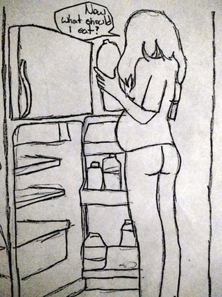 A girl getting up for a midnight snack. What she's not saying is that there alos was a 11pm snack, a 10pm snack, a 9pm snack... and so on.Related content