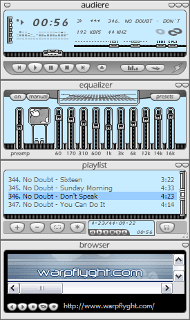 This looks like a great skin, but I can't actually download it because of that file-server crash thingy. I would suggest that the buttons be altered so they match each other, and probably do something about the writing under the EQ, perhaps even get rid of it altogether? Anyway, this is still a nice-looking skin with a great concept behind it - as well as a great skinner. Good job!