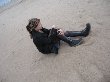 Your red hair against that blue sky looks great, the boots as well :thumbup: