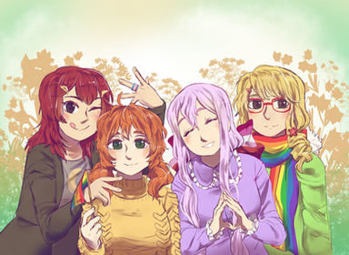 So everyone snows that Steven Universe has a freaking beautiful coloring style. I couldn't help but to take screenshots of some episodes and create my own color palettes out of it. For this one I used the episode We Need To Talk (Episode 62). And BelHun in flower crowns gives me so much life ;w;Hetalia belongs to Hidekaz Himaruya, I only own this artwork! Please give credit if you wish to use on another site!