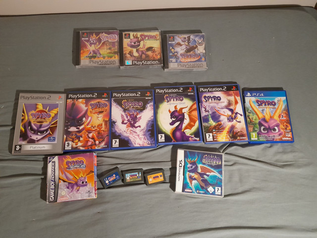 I own four of these gamesΒ except I have Normal Version of Spyro 3, Greatest Hits of Spyro 4, The first two games on PSN. I also had Spyro Orange but it got stolen by some greedy person while there was a party along with Crash Purple, Super Mario Advance, and the GBA itself! and I didn't find out until some days later...):