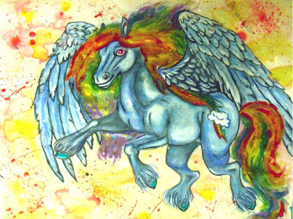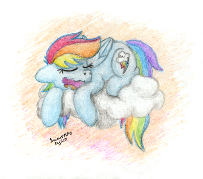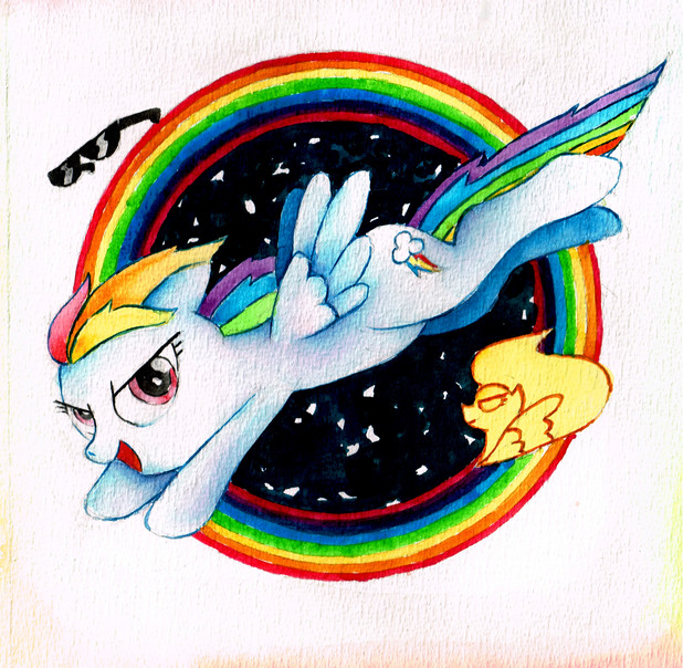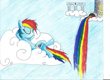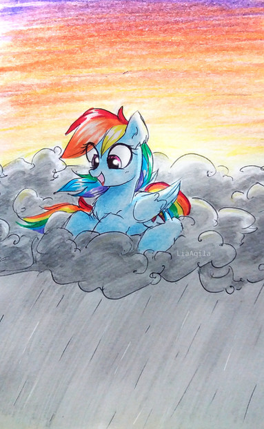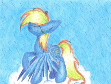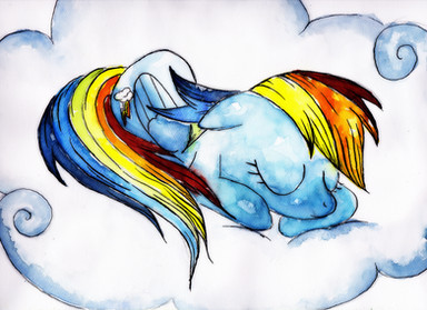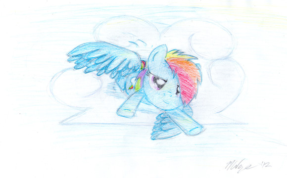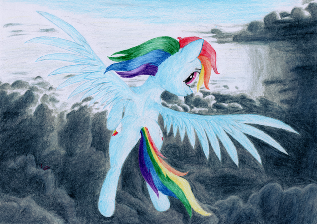 Well, this is Rainbow Dash from eposide "Magical Mystery Cure". It was so fun to paint these cloudswatercolours and pencil