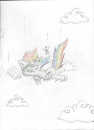 Uuu, znakomicie Ci wyszły te chmury... tamta kopnięta naprawdę wygląda, jakby się rozpadała I wspaniała ekspresja Rainbow... ale te Twoje kuce są coraz chudsze, czy mi się wydaje?
