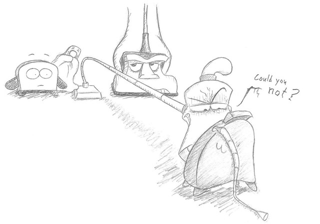 I don't know. I thought leaving some empty space gave a greater impact on the humor.The Brave Little Toaster (c) Jerry Rees and always Jerry Rees