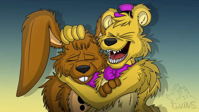 Probably should have been SpringTrap, but I thought this would be cuter with Goldie!"Who's a cute little rabbit, PlushTrap, that's who!"