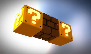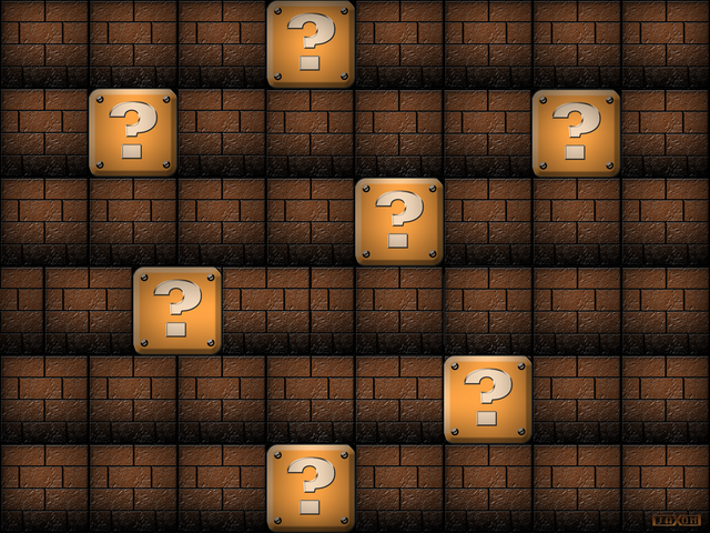The viewer is introduced to a meta-question, in the form of a question(s) enclosed in a box desnoted with a question-mark. Nothing says if the blocks contain something unknown, or if they represent something exogenous to the image. Why they are clustered also gives no hint.