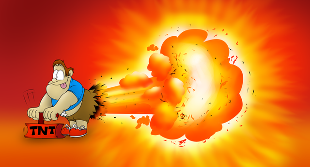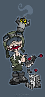 The only real problem i have with this is the reflection on the right hill. The rest of it fucking rocks. The explosions looks cool with the toonish look and the debris and everything is awesome. cool character--i hope to see more of him!
