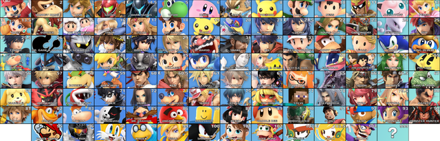 This is supposed to mimic a smash roster.Characters: