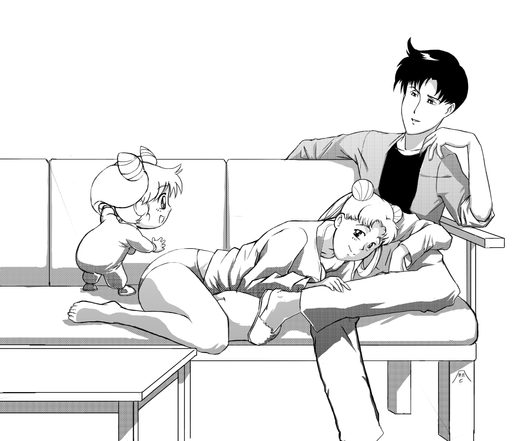 This is so sweet! I love domestic scenes with these guys. ChibiUsa's about to kill Usagi though. XD
