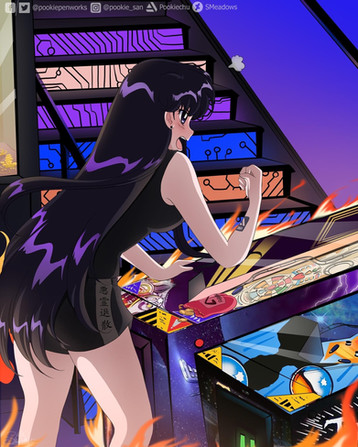 Continuation for a clientRei had enough of the pinball machine taking her coins at Super Abari Game Bar. Looks like she's leveled herself up to Sailor Mars and is back for revenge 😎 #sailormoon #sailormars #abarigamebar #commission #digitalart