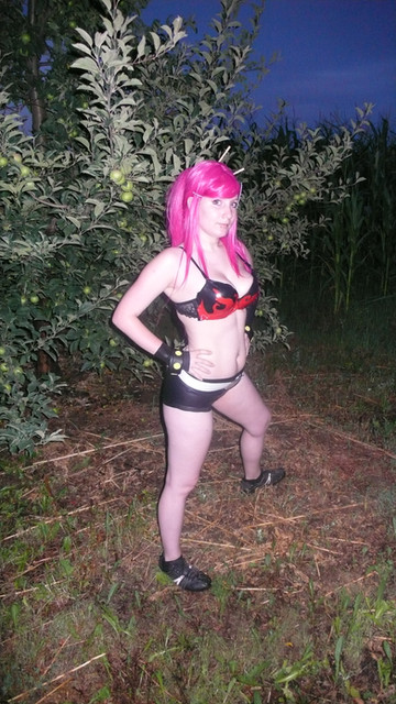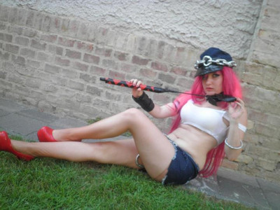 Here is my latest work: Poison Kiss from Street fighter x Tekken/ Final FightIt wasn't a big work I just wanted it for fun so everything is made by me. I made the shirt, pants, whip, hat, silver stuffs, collar, arm stuffs and styled the wig. I tried some new tings out. and my whip have got a pink light