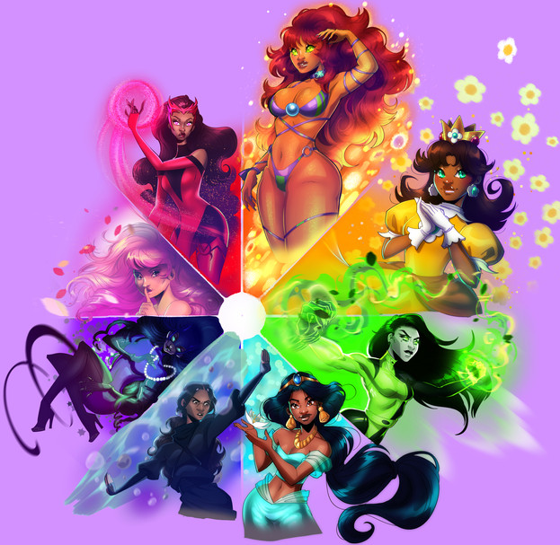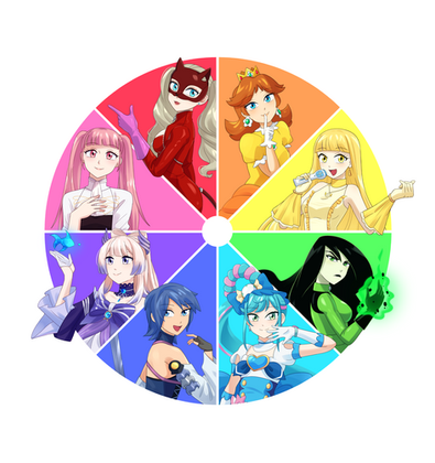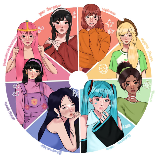 #artchallenge #coraline #insideout #jessicarabbit #princessdaisy #shego #smurfette #starfire #pinkdiamond #colorwheelchallenge