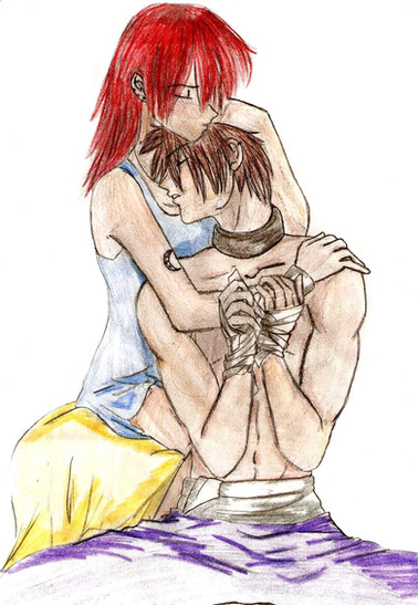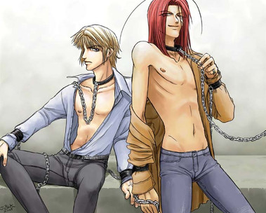 Yay for AkiHika. ^_^ I like the pose and everything, very cute (kinda cozy, kinda sexy) and the handcuffs! It rather suits the two of them. They aren't tied together by anything so tangible, but all the same they never will get away from each other, even if they would try. I think the only thing I could complain about is that they both look awfully young. That may have been intended (i donno) but you didn't say, so, eh. if intended, good job, cuz they look young while still getting across the intimacy, but if not, well, your other art shows this isn't a major problem. ^_^ Keep up the beautiful art! There's far too little good HikaGo out there. *cookies for the hikago (& dn while i'm at it!) art*