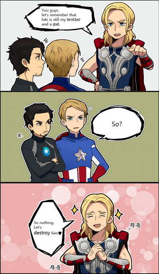 Steve, be a good boy, and put that shield awayAvengers! Tony/Steve, again!